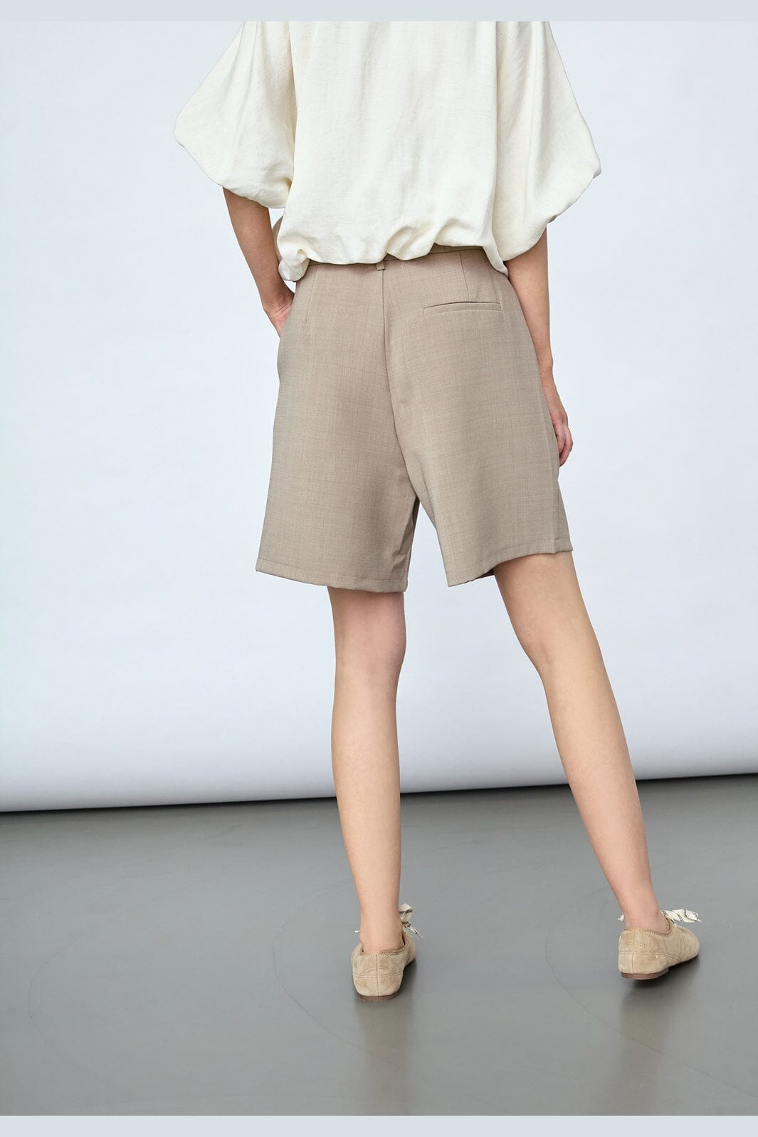 Shorts från Sisters Point i en neutral beige färg. Shortsen har vida ben och en stilren skärning med hög midja och lös passform.