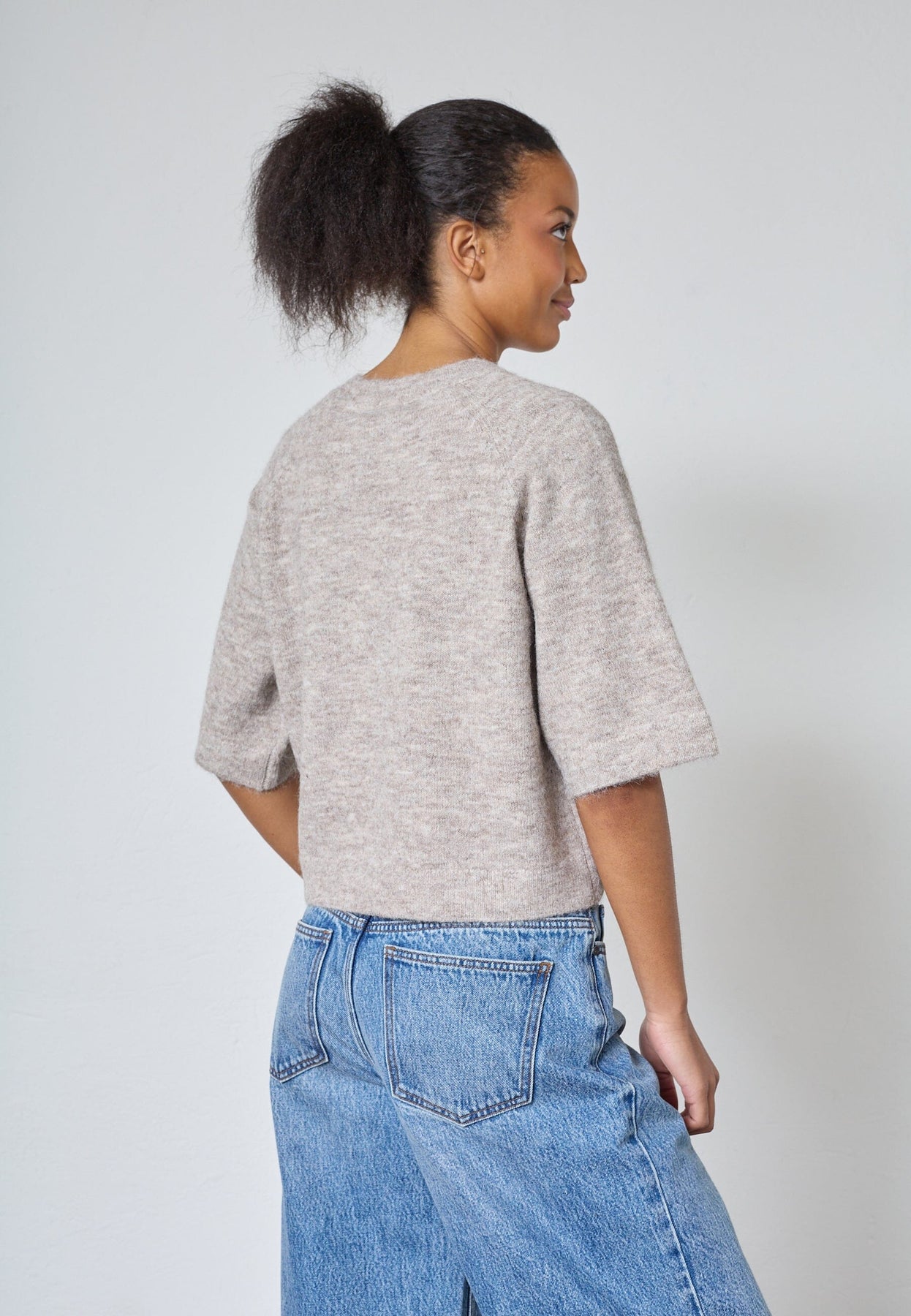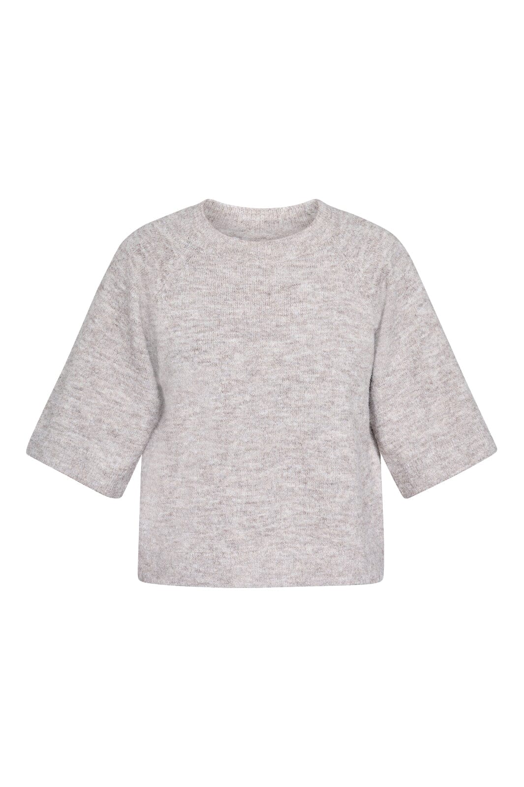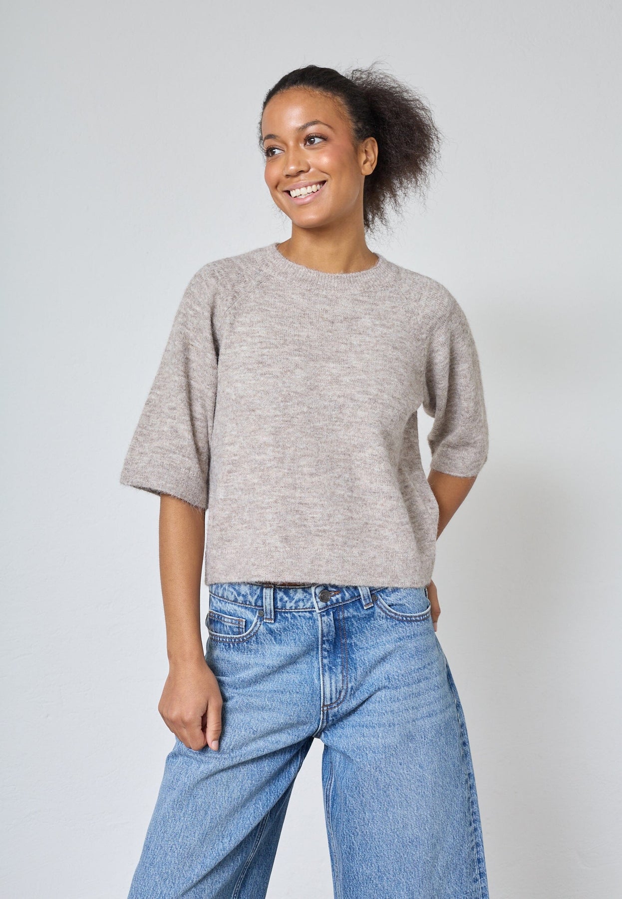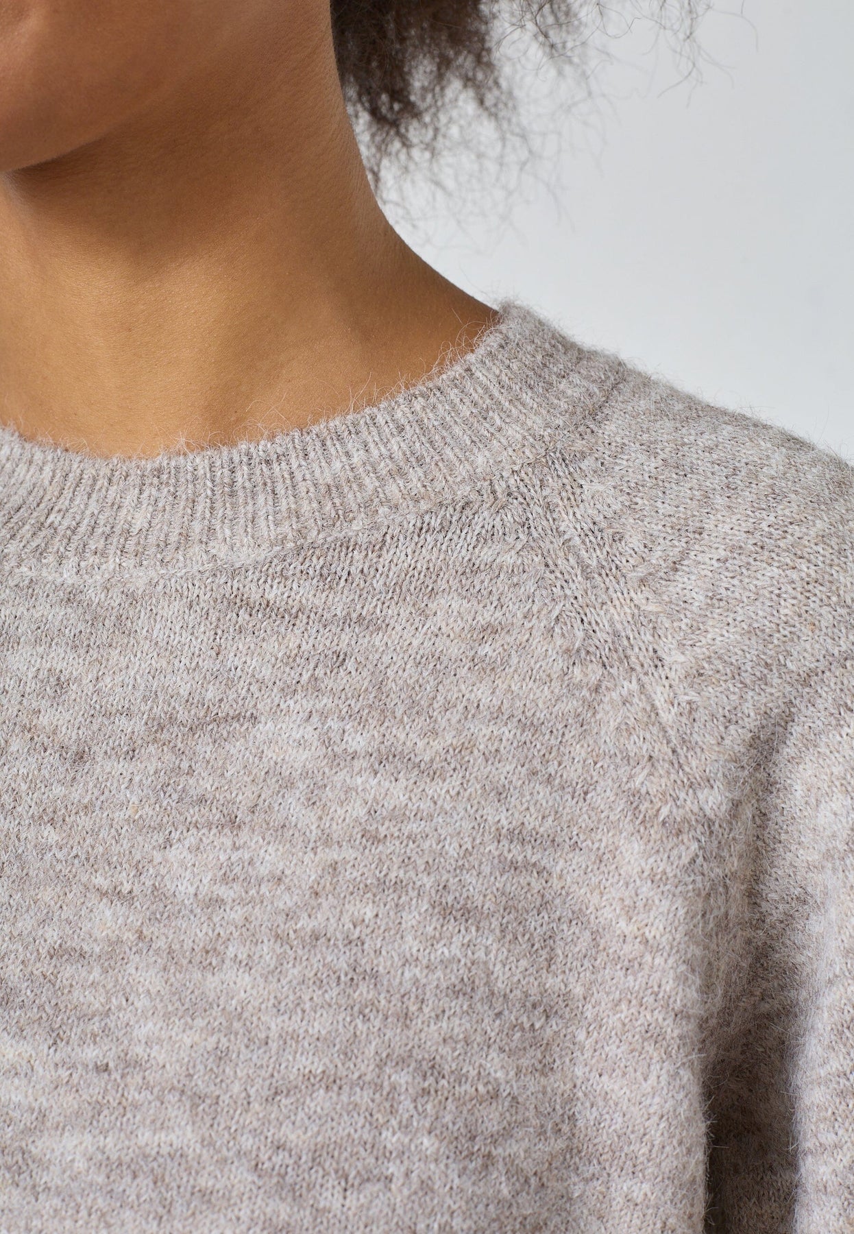 Stickad tröja från Sisters Point i melerat garn. Färgen är en neutral beige-sandnyans. Tröjan har en lös passform med vidd i kroppen.