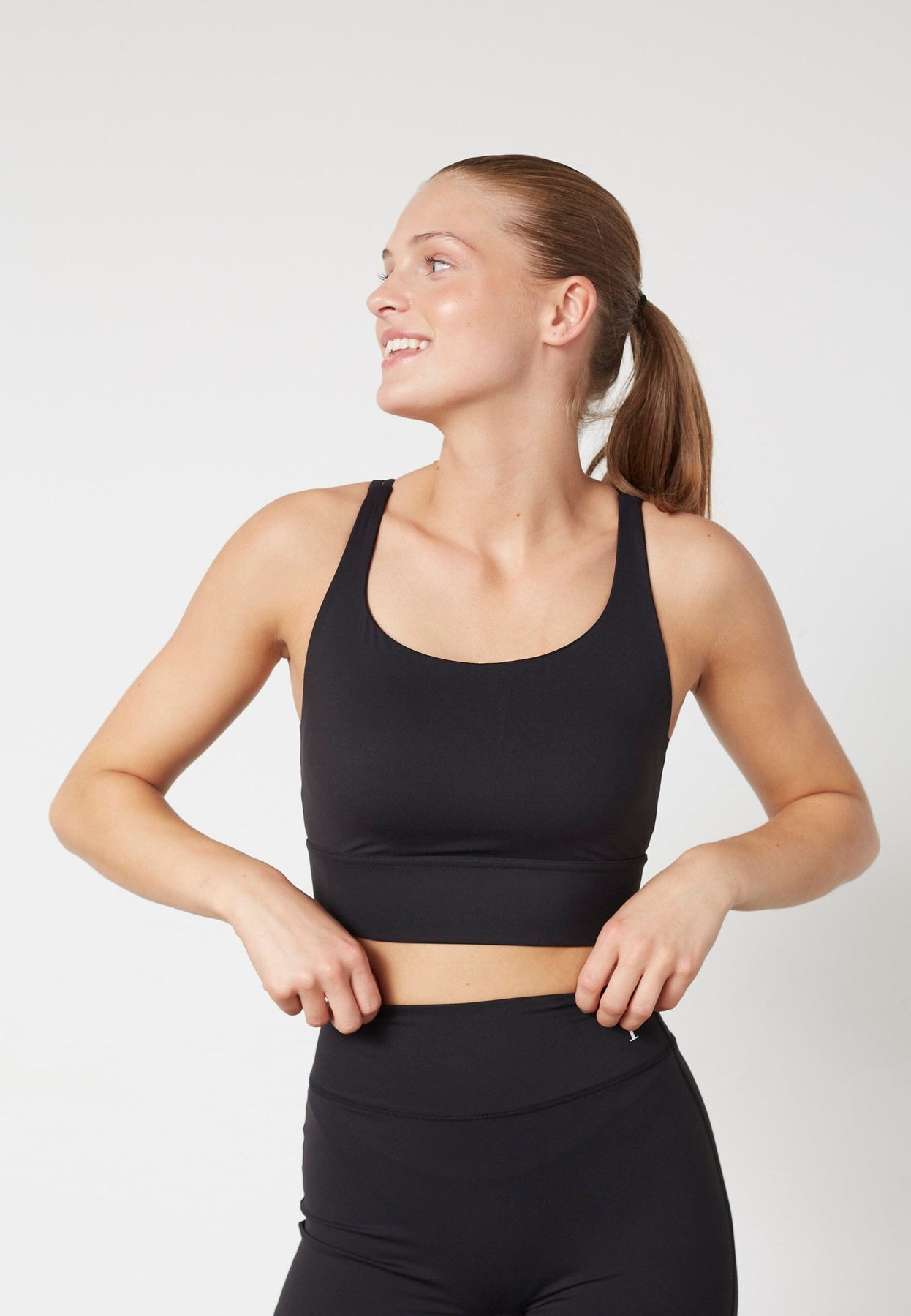Svart topp från Sisters Point med tunna spaghettiband och rund halsringning. Toppen har en åtsittande passform i svart.