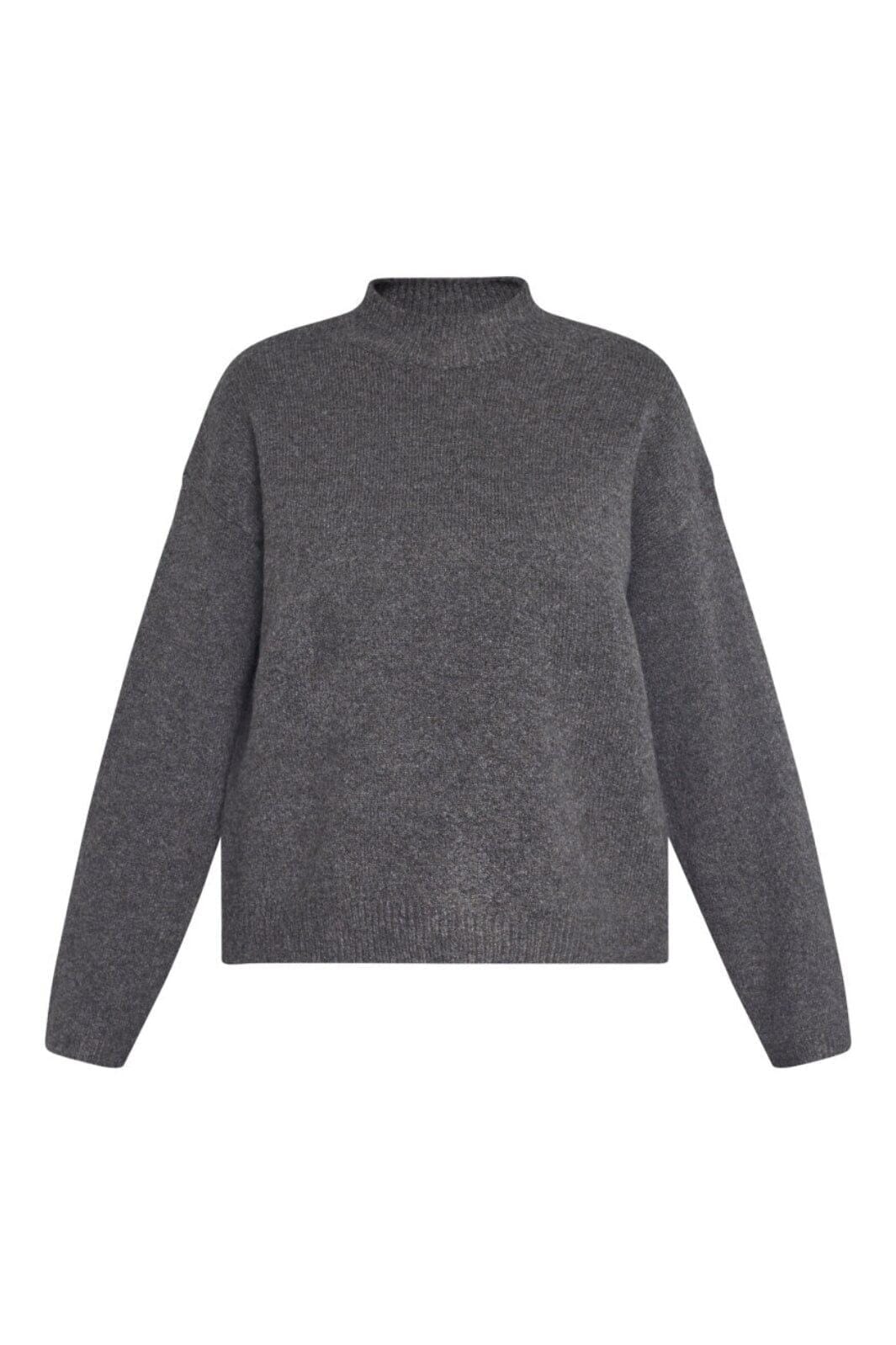 Stickad tröja från Sisters Point i brun och grå melange. Tröjan har hög halsringning, långa ärmar och en lös passform.