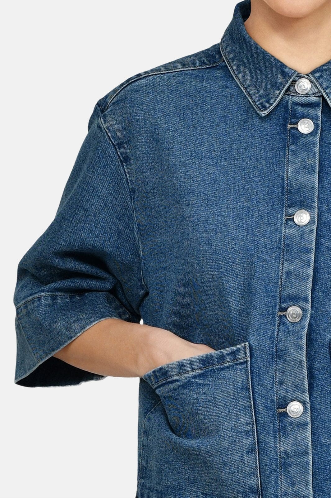 En trendy denimjakke med en normal pasform. Jakken har store og luftige ærmer, lommer i hvert side og en knappelukning med kontrastknapper. Modellen er 175 cm og har en størrelse S på.