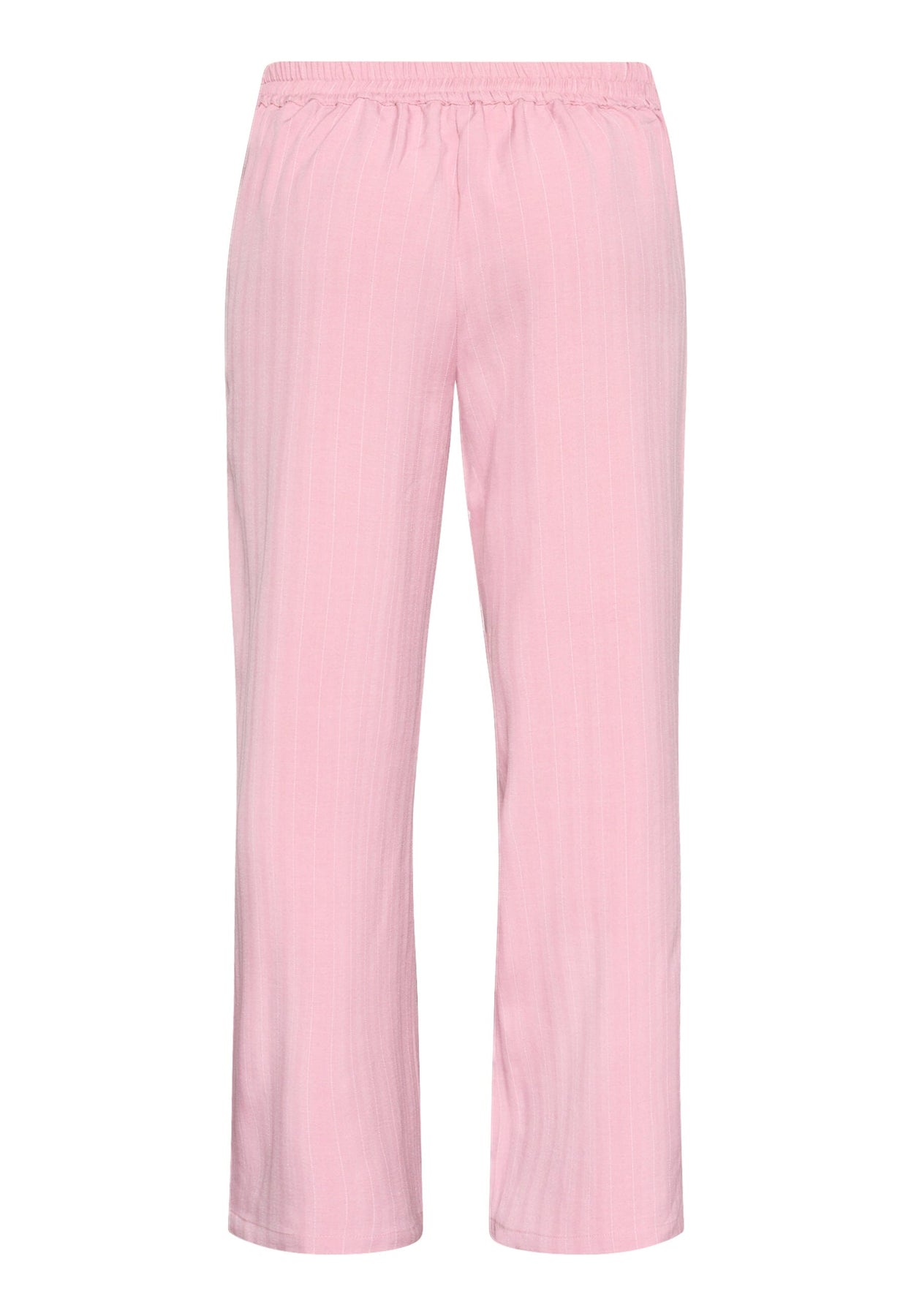 Rosa kostymbyxor med tunna ränder från Sisters Point. Byxorna har hög midja med resårkant och vida ben i en lös passform.