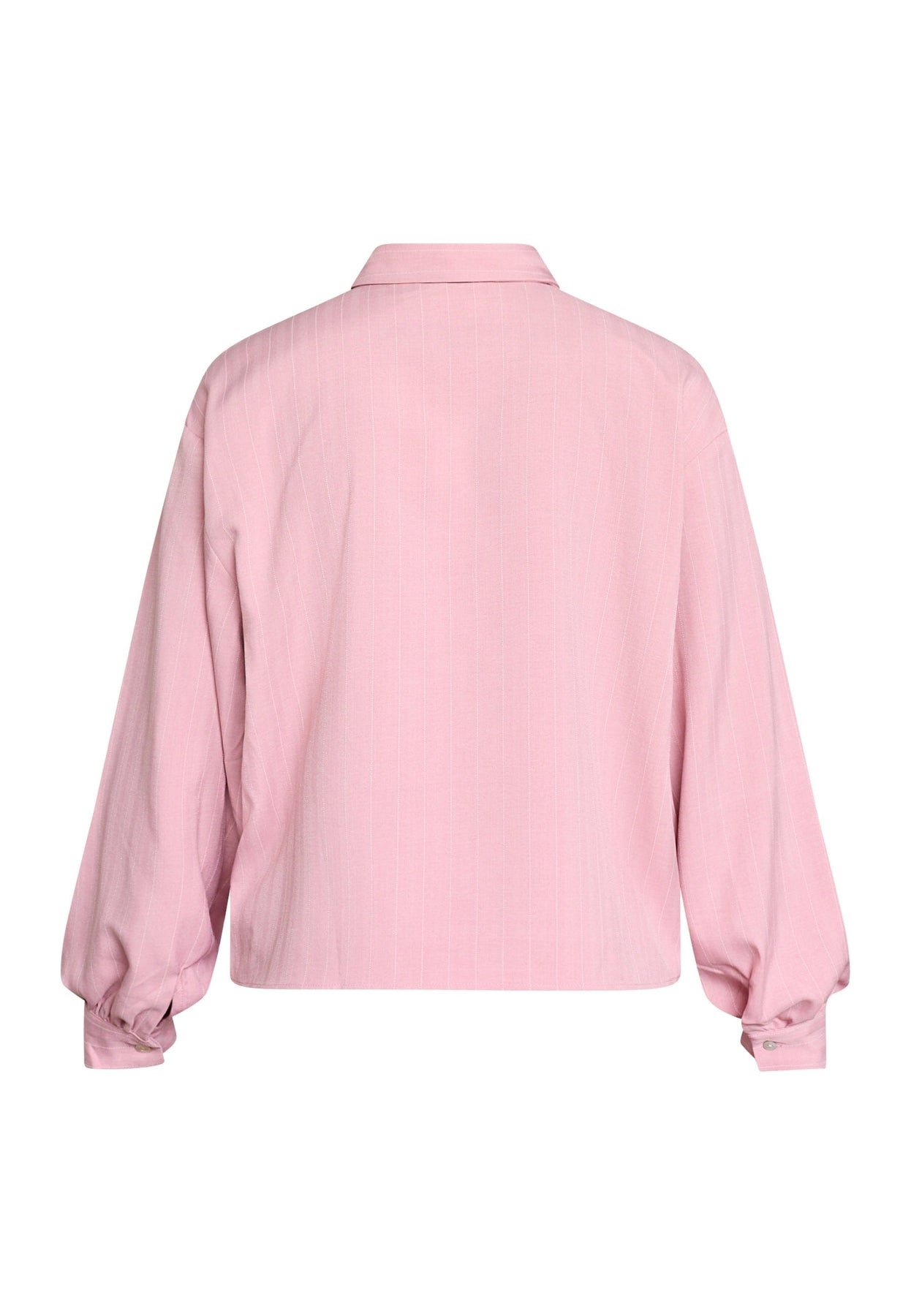 Rosa skjorta från Sisters Point med kritstreck. Skjortan har långa ärmar, klassisk krage och en lös passform med bröstficka och knäppning.