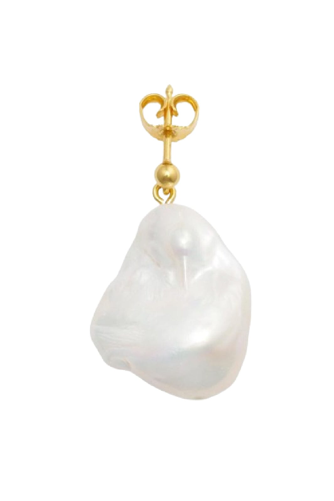 Guldpläterad örhänge från Sorelle Jewellery med en barock sötvattenspärla. Örhänget har en vit pärla med pärlemor och kan användas enskilt eller i par.
