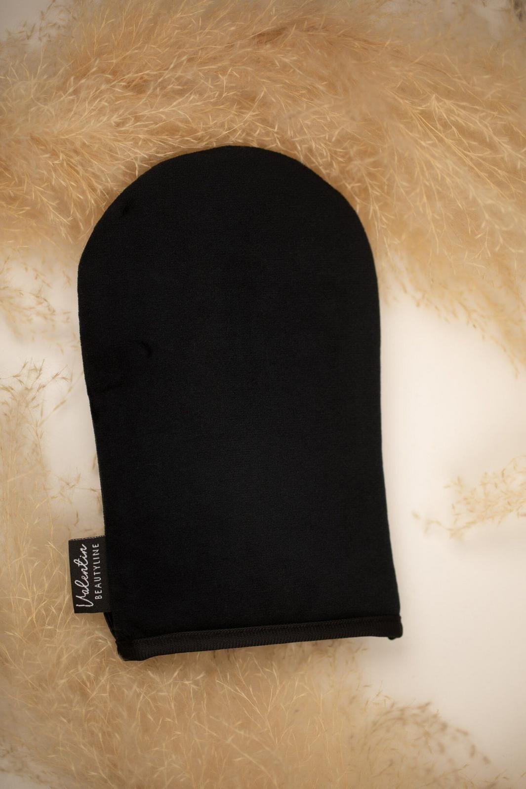 Svart appliceringshandske från Valentin Beautyline för brun utan sol och bronzer. Handsken skyddar händerna mot färg och hjälper till att fördela produkten jämnt.