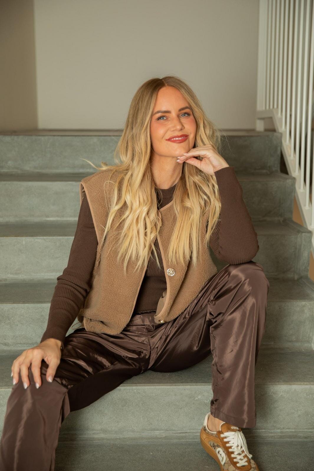 Fluffig väst från Valentin Studio i en mörk sandfärg. Väst med ärmlös design och rund hals, tillverkad av 100 % polyester.