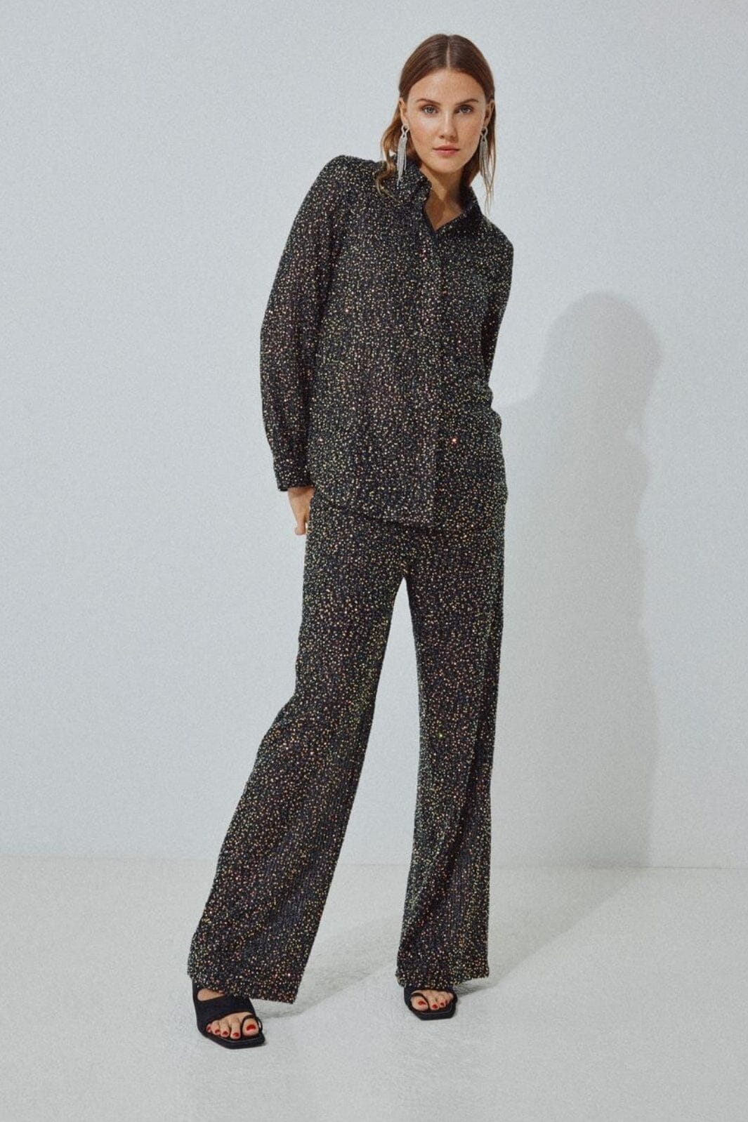 Dessa byxor har en bekväm regular fit och är dekorerade med lysande paljetter som fångar ljuset och blickar.