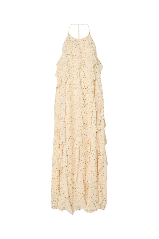 Lång halterneckklänning från YAS i en mjuk gul-krämfärgad nyans. Klänningen är gjord för festliga tillfällen.