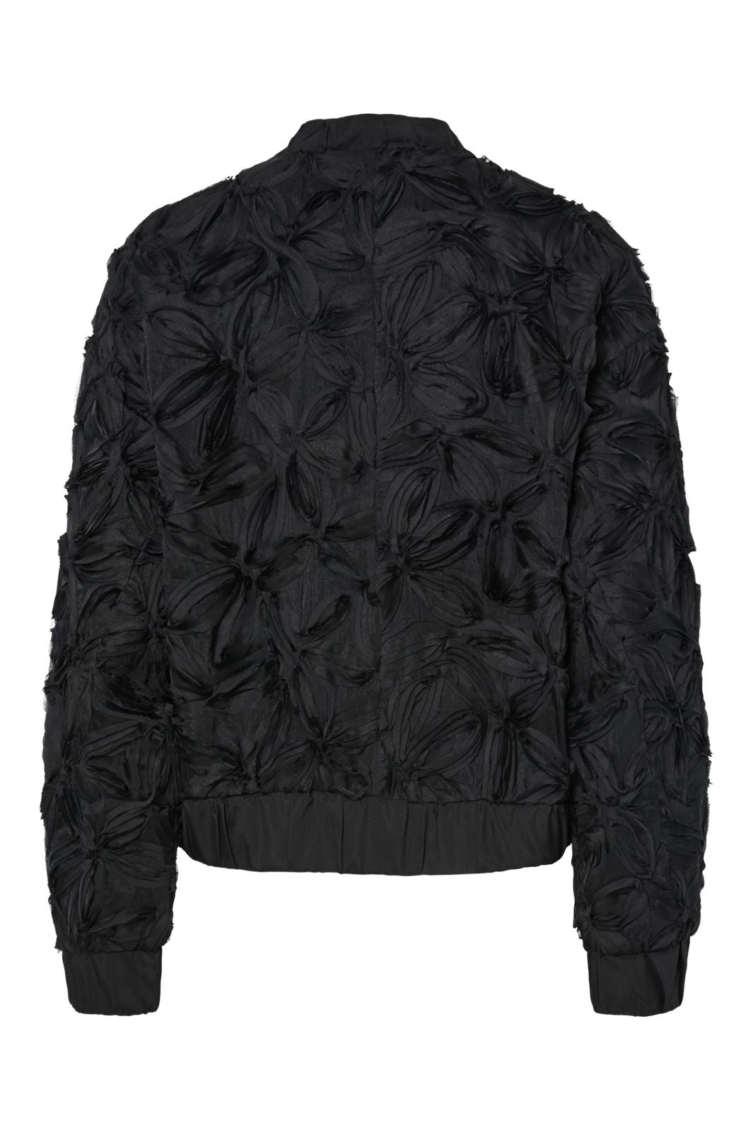 Svart bomberjacka från Y. A.S med jacquardvävt blommönster. Jackan har en O-hals och långa ärmar med elastiska manschetter.