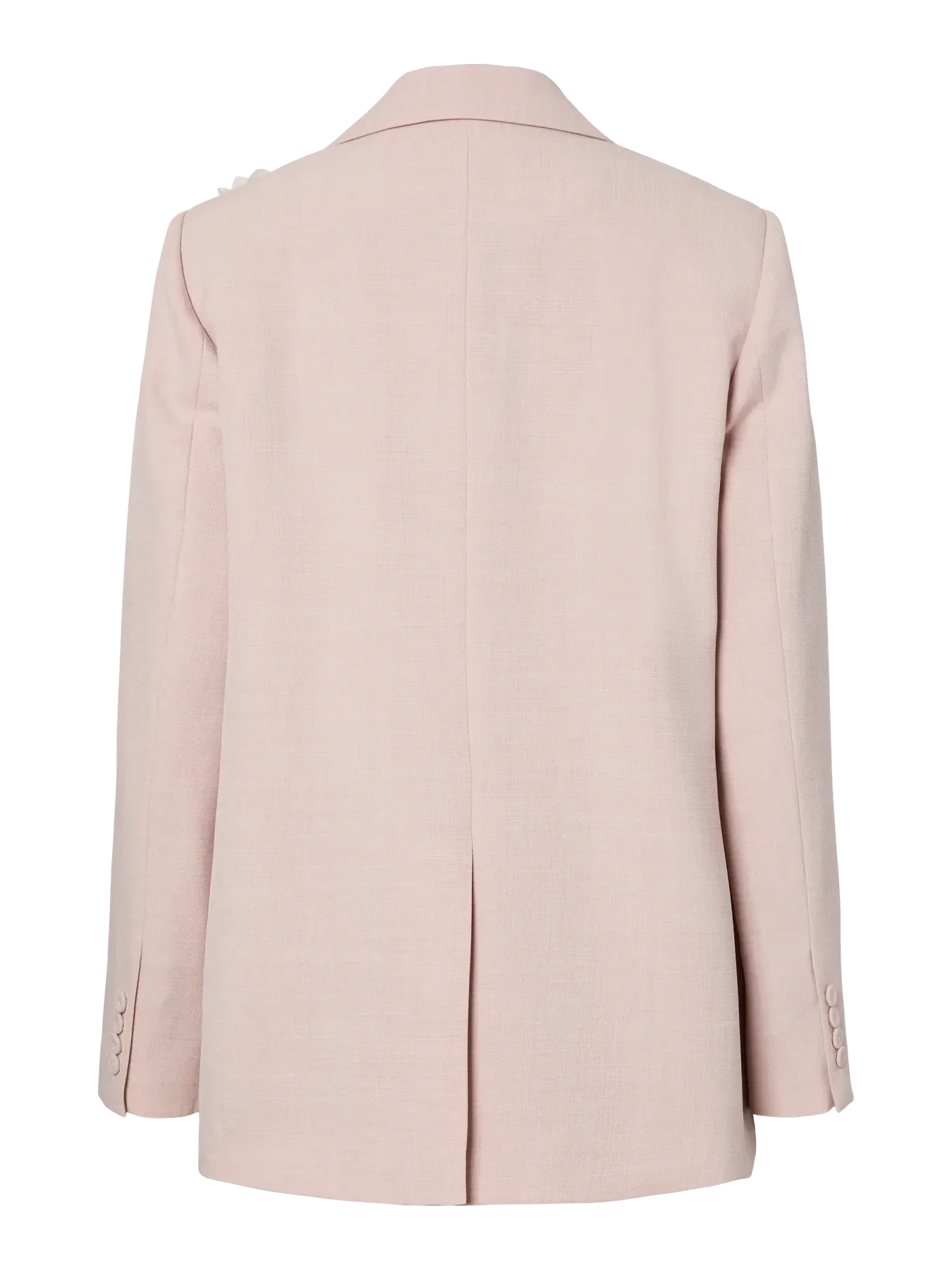 Rosa blazer från YAS med 3D-blommapplikationer på framsidan. Blazern har en klassisk slagkrage och stängs med knappar.