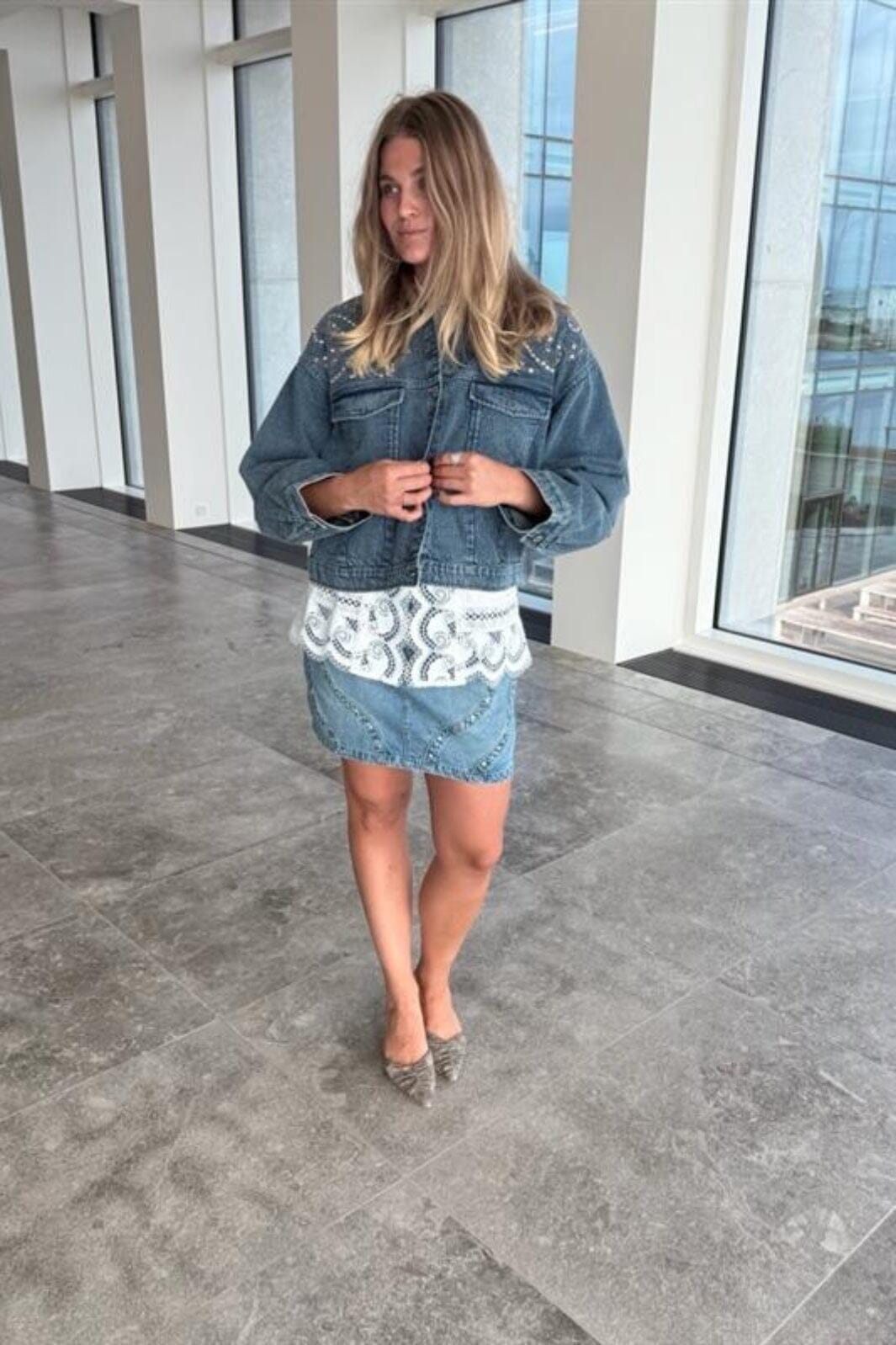 Ljusblå denimjacka från Y. A.S med broderi och pärldetaljer. Jackan har en lös passform med skjortkrage och långa ärmar. Knappar fram och två bröstfickor ger jackan ett klassiskt uttryck.